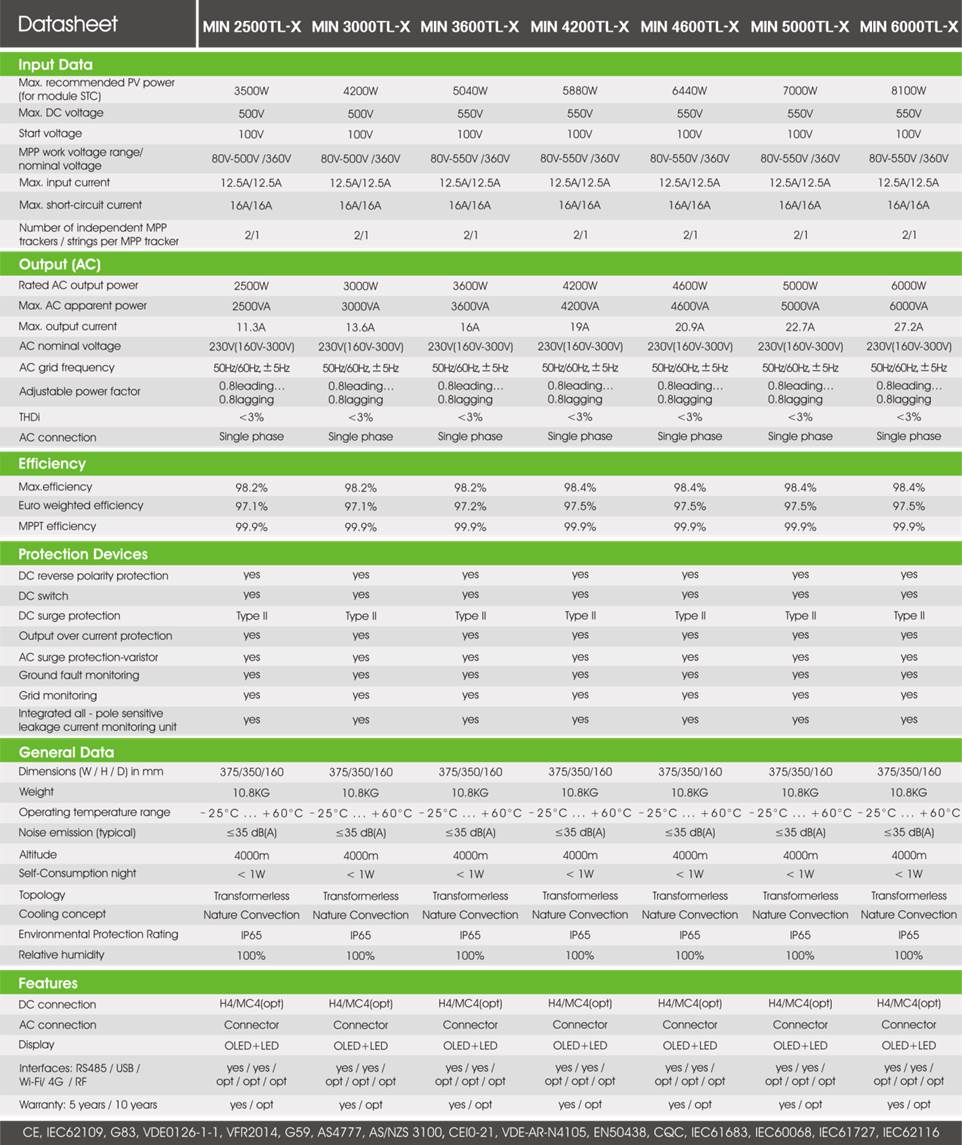 Thông số kỹ thuật INVERTER HÒA LƯỚI GROWATT 5KW (MIN 5000TL-X)