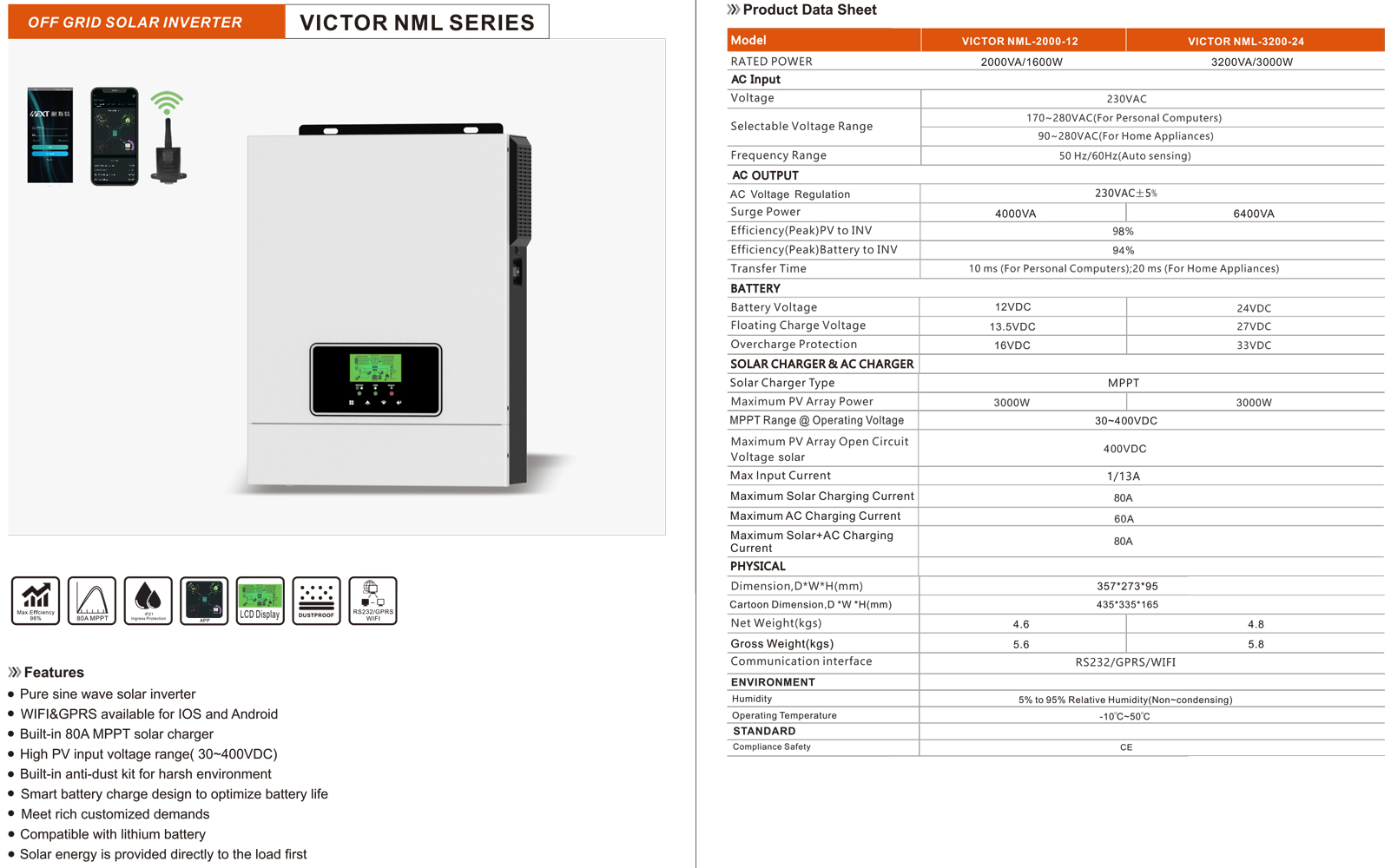 Thông số kỹ thuật Inverter Hybrid độc lập Ecopower 24V-3KW (NML-3200)